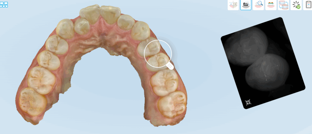 iTeroには近赤外光画像(NIRI)による隣接面う蝕検知補助機能がついています。